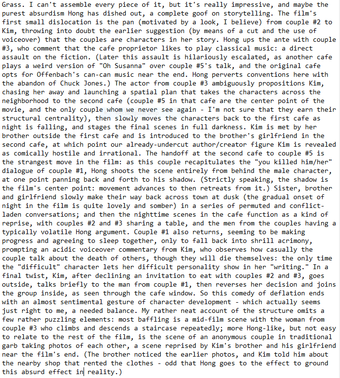 2. Grass (Hong Sang-soo, South Korea)